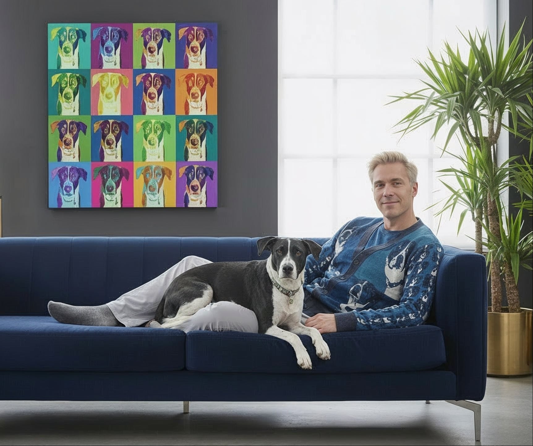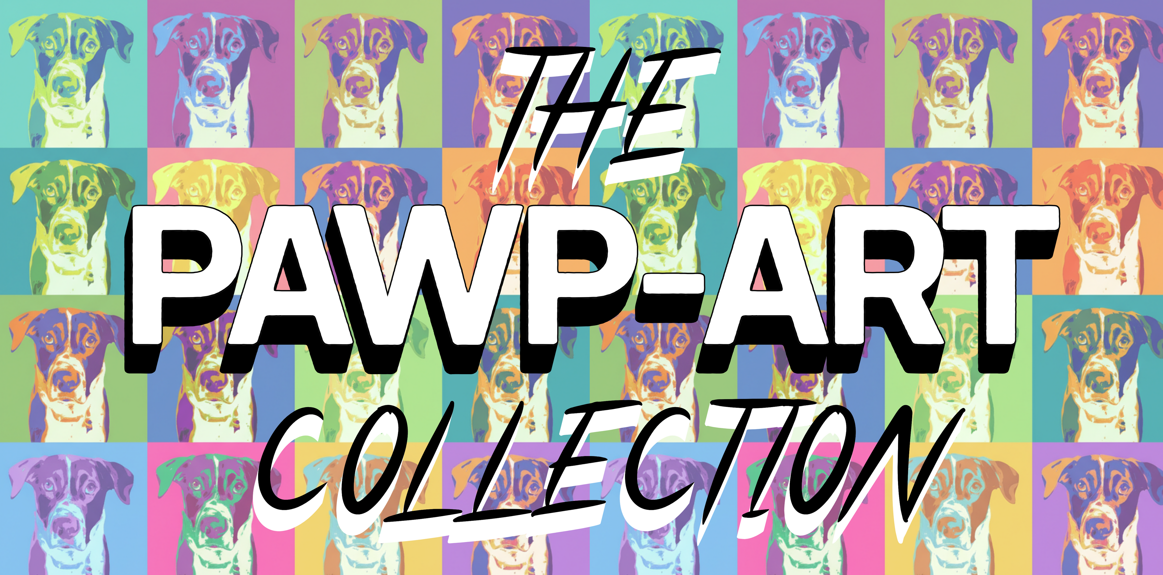 Warhol-inspired pet portraits on canvas, mugs, apparel, and more—bold colors and repeating patterns that transform your pet into a Pawp Art masterpiece!