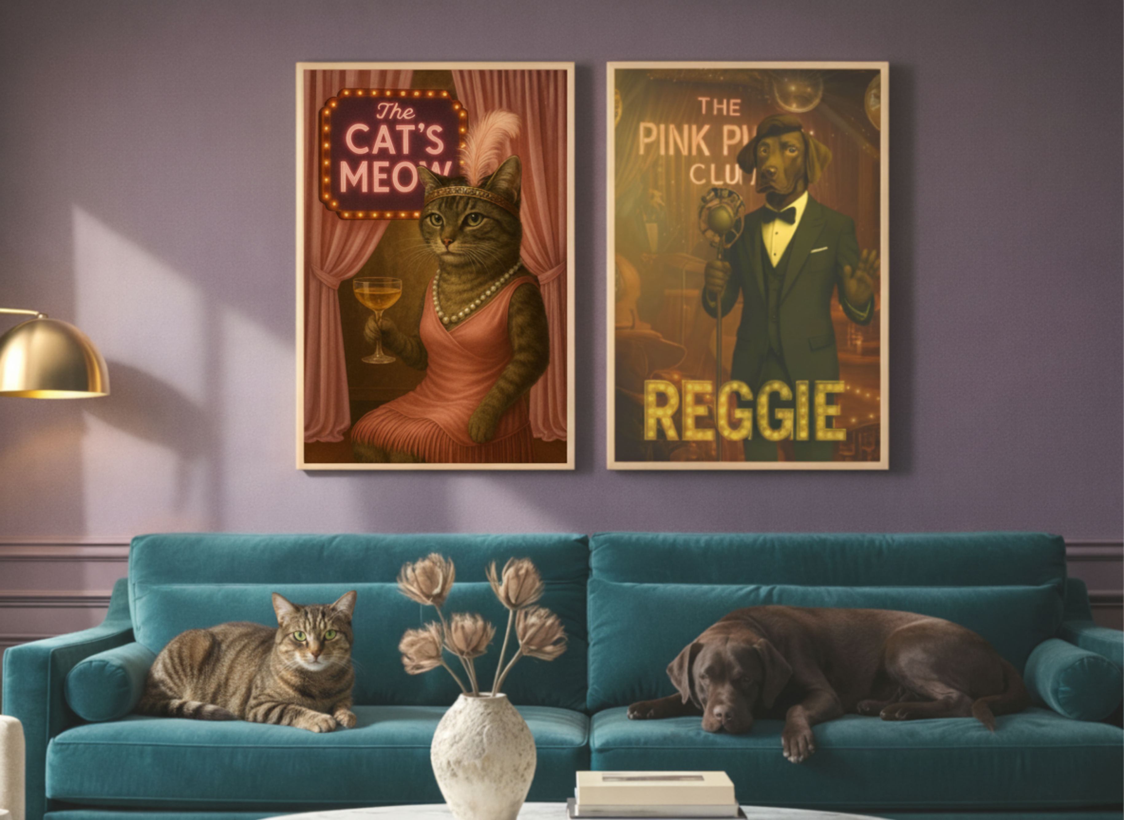Transform your pet into a dazzling jazz star with our vintage-inspired portraits!